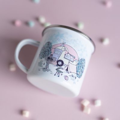 Camping mok roze met naam – uniek en persoonlijk cadeau
