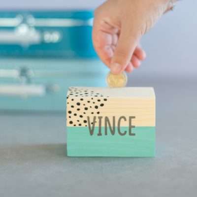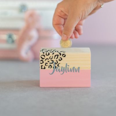 Houten spaarpot met naam – persoonlijk kraamcadeau