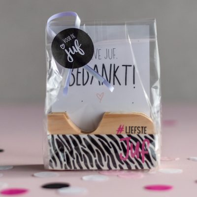 Plakbandroller liefste juf zebra – stoer en origineel bedankje
