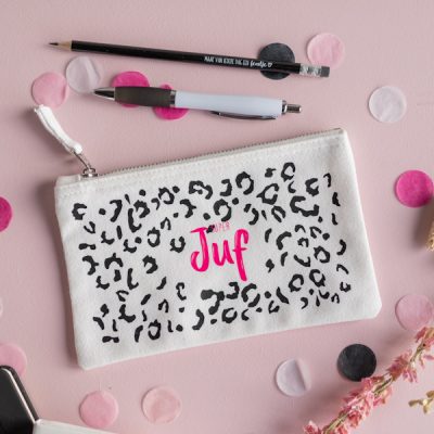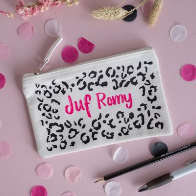 Etui luipaard juf met naam – persoonlijk bedankje met stijl