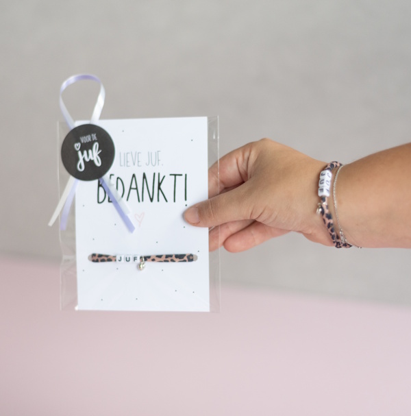 Wil je de juf laten zien hoe bijzonder ze is? Met deze juf armband met zebra-print geef je een cadeau dat stijlvol, hip en attent tegelijk is. Perfect voor kerst, het einde van het schooljaar of gewoon als lief gebaar tussendoor.