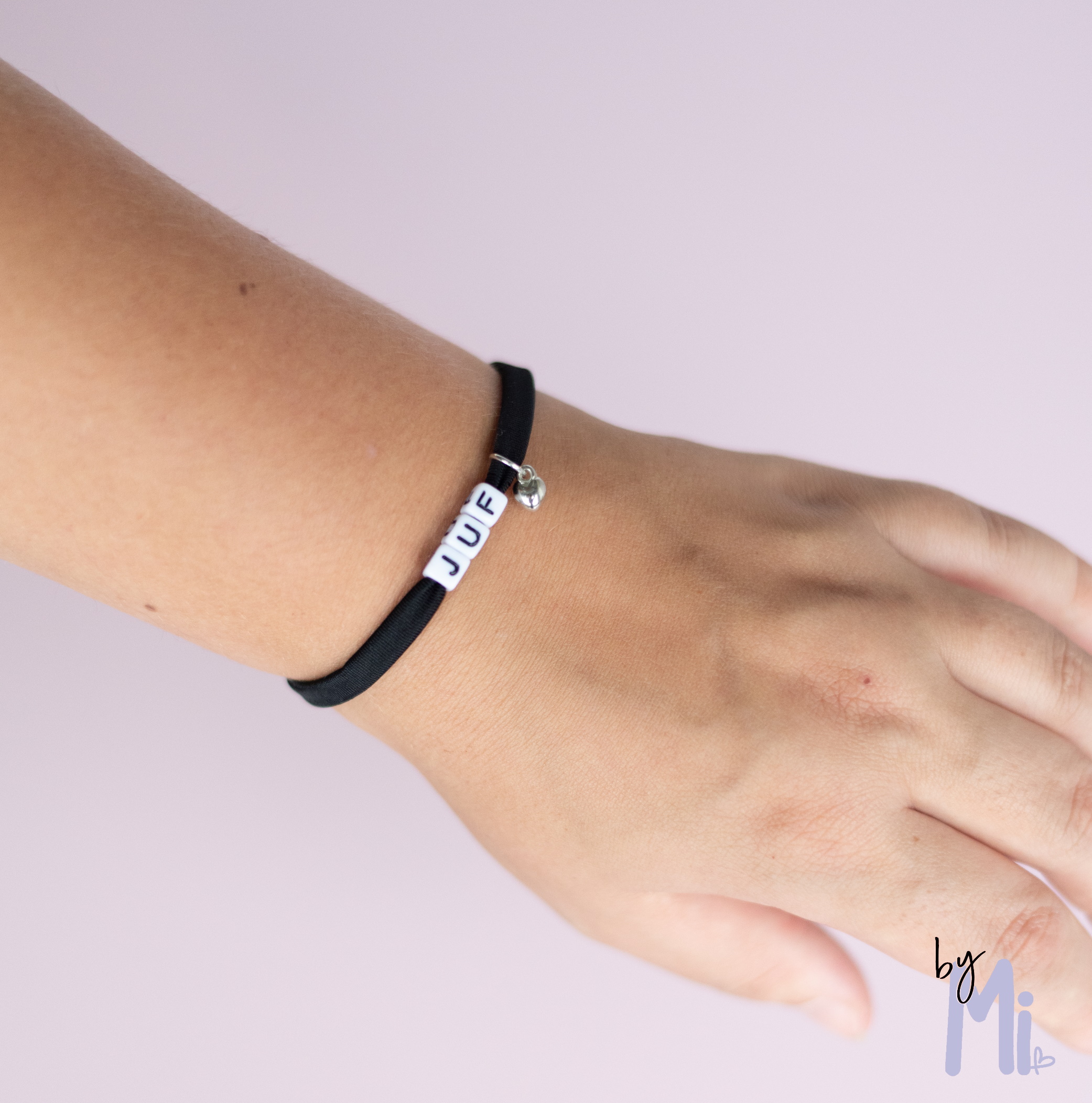 Zwart bandje met ‘juf’… tijdloos en stijlvol