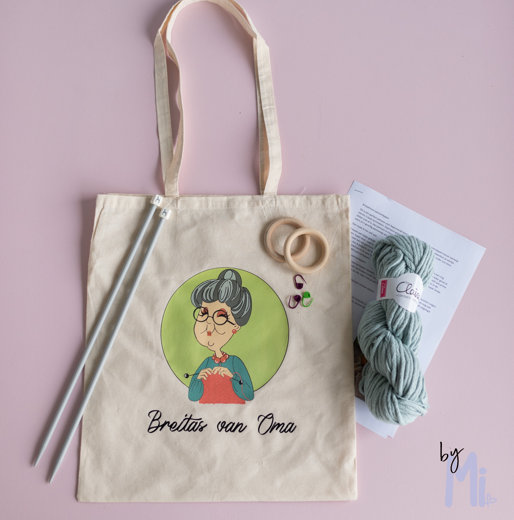 Het pakket is speciaal vormgegeven voor oma, maar kan natuurlijk ook door andere breiliefhebbers gebruikt worden.