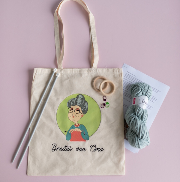 Het pakket is speciaal vormgegeven voor oma, maar kan natuurlijk ook door andere breiliefhebbers gebruikt worden.