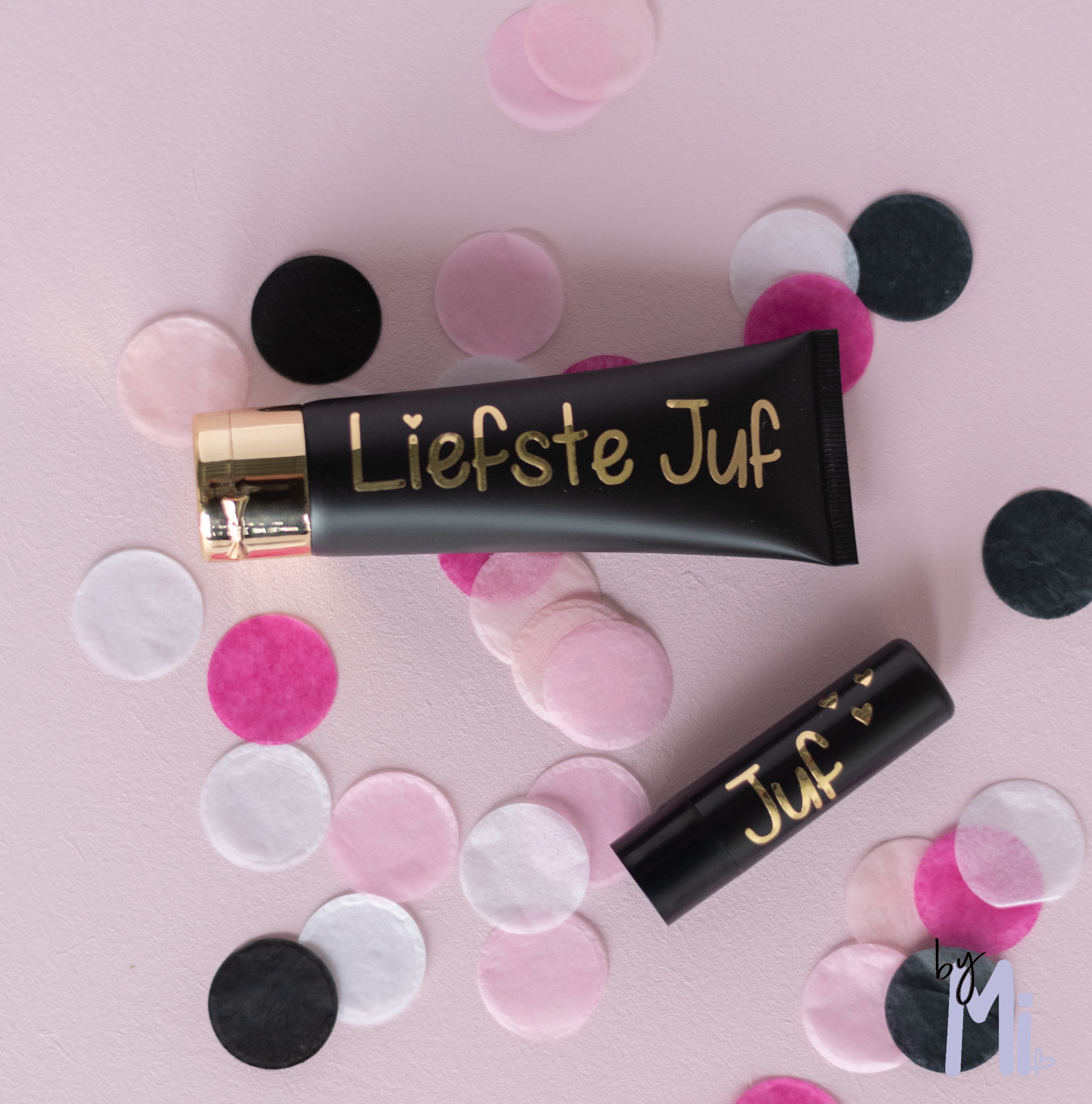 Op zoek naar een stijlvol cadeautje waarmee je de juf écht verrast? Deze verzorgingsset juf zwart combineert elegantie met praktisch gebruik. De set bestaat uit een zachte handcrème en een verzorgende lippenbalsem, verpakt in zwart met gouden details. Compact, luxe en altijd handig – een cadeau dat elke dag opnieuw laat zien hoe waardevol ze is.