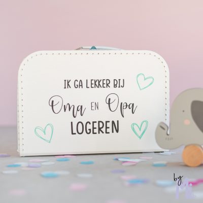 Voor kleine avonturiers met grote plannen is er dit logeerkoffertje “Ik ga logeren bij opa en oma”. Een vrolijk en praktisch koffertje dat logeren nog leuker maakt. Ideaal om de eerste nachtjes uit logeren speciaal te laten voelen.