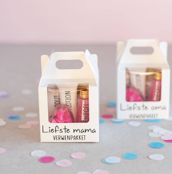Bestel vandaag nog dit verwenpakket en tover een glimlach op haar gezicht.