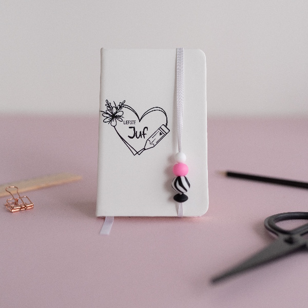 Wil je jouw juf verrassen met een klein maar bruikbaar cadeautje? Dit notitieboekje met zebra kraal is zowel vrolijk als praktisch. Met 96 gelinieerde pagina’s biedt het ruimte voor lijstjes, notities en ideeën. Het elastiek met vrolijke kralen, waaronder een opvallende zebra kraal, maakt dit boekje net even bijzonderder.