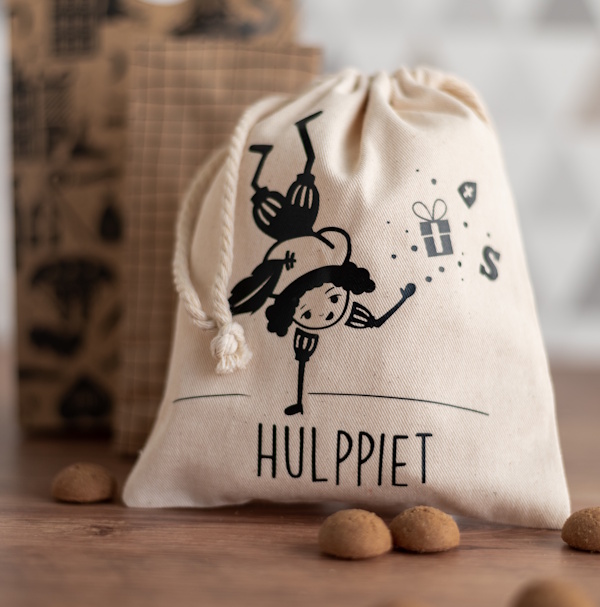 Maak Sinterklaas nog feestelijker met dit pepernootzakje hulppiet. Een vrolijk katoenen zakje dat precies groot genoeg is voor een flinke hand pepernoten. Stevig, duurzaam en keer op keer opnieuw te gebruiken… ideaal voor alle kleine hulppieten in de dop.