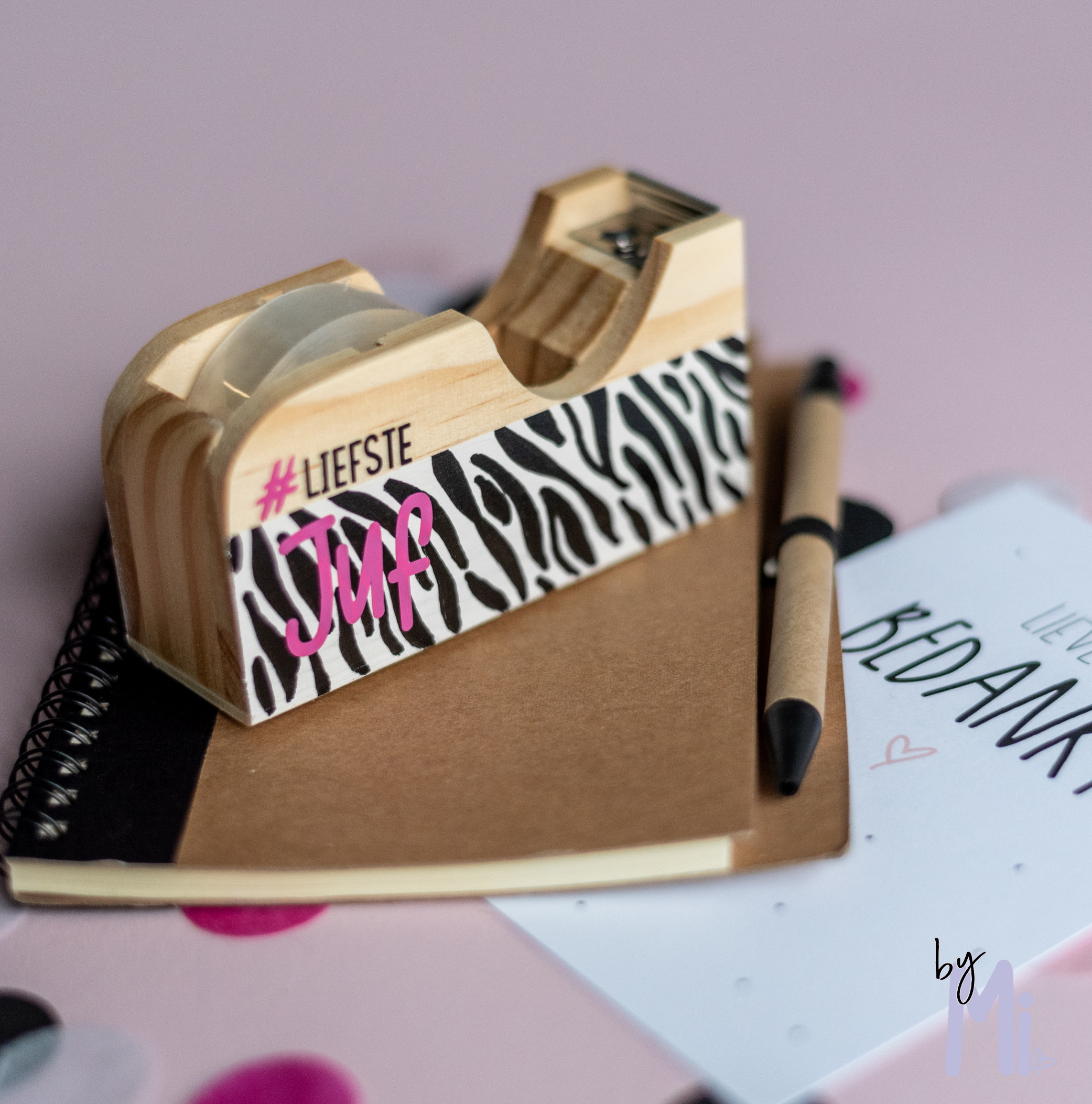 Wil je de juf op een bijzondere manier bedanken voor haar inzet het afgelopen schooljaar? Met de plakbandroller liefste juf zebra geef je een cadeau dat zowel praktisch als uniek is. Deze houten plakbandhouder is voorzien van een stoere zebraprint, speciaal ontworpen en met de hand geschilderd.